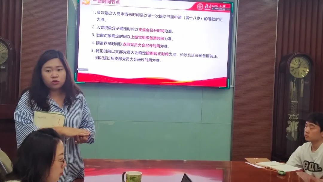 会议最后由刘畅老师进行了总结和补充。刘畅老师向各支部说明了发展流程的时间节点,强调了系统维护的重要性。