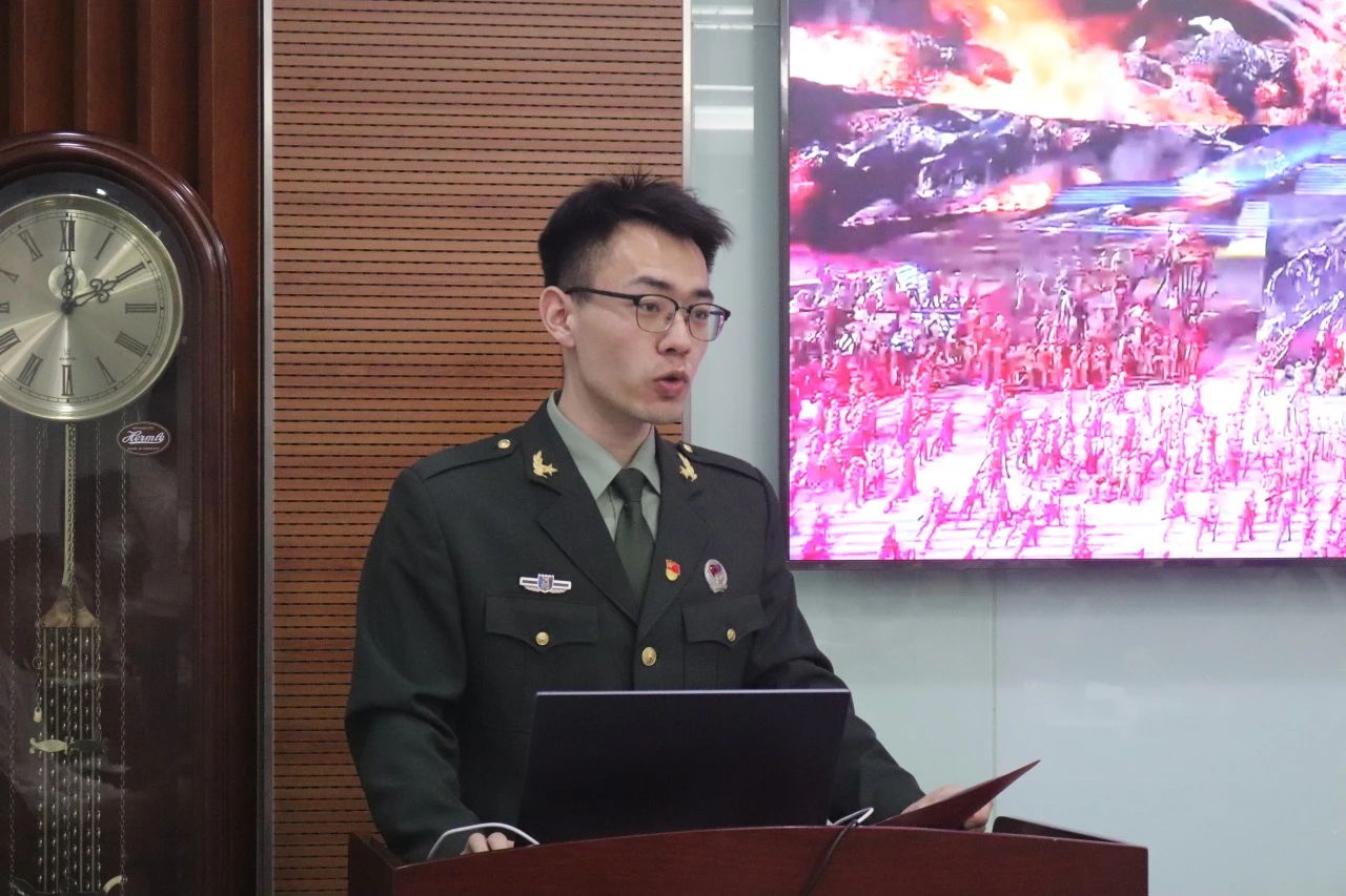 笃行党支部贾康宁同学以自己的个人经历为切入点,讲述了自己参军入伍、参加庆祝中国共产党成立100周年大型情景史诗《伟大征程》等重大活动的收获与感悟,同时揆诸当下,点明了自己作为新时代北师学子应当“军心不忘,青春向党”的主题。