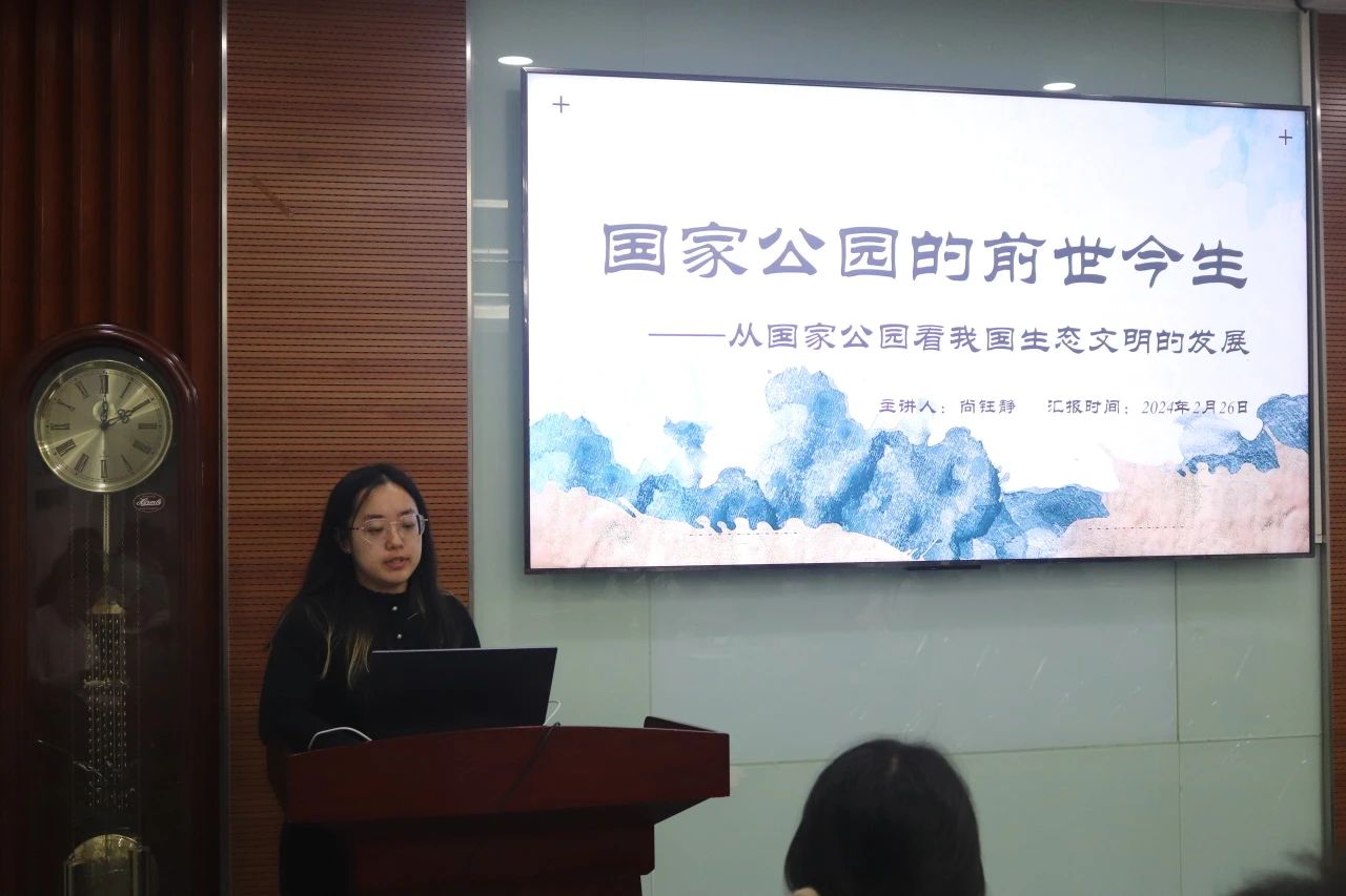 致远党支部尚钰静同学以国家公园的前世今生为主题背景,讲解了我国生态文明的发展,讲述了国家公园的历时多年的建立过程、介绍了东北虎豹国家公园的具体实例、谈到了传统保护与现代技术、点明了我们的优势,并对国家公园的未来进行了展望。