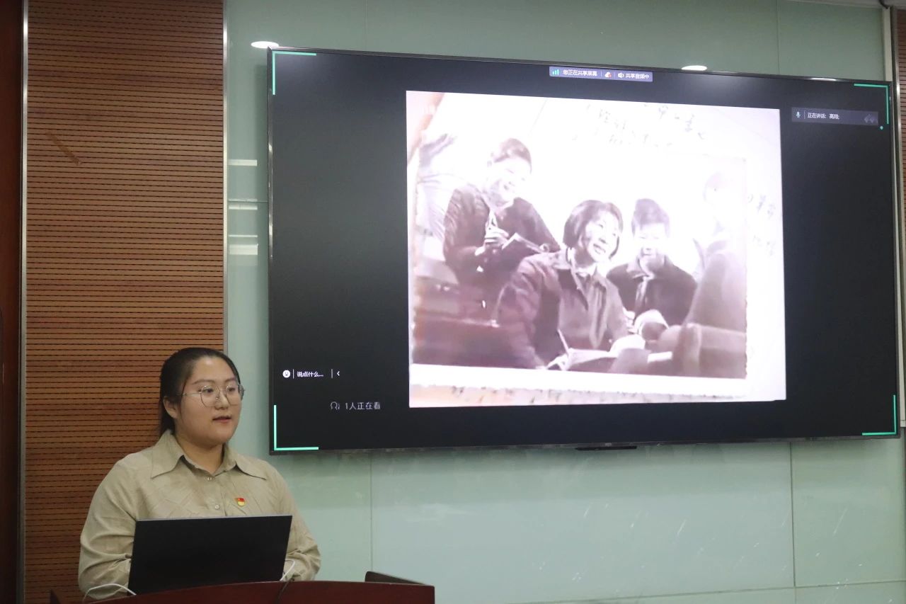 励学党支部李旭阳同学从于漪老师的生平事迹入手讲解,在故事中点明了于漪老师的教育理念、突出了她对教育事业的贡献、同时呼吁北师新时代学子学习这位新时代的大先生的教育理念和精神。