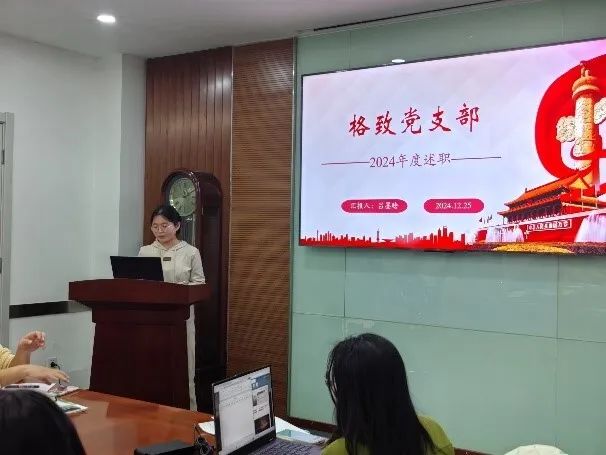 接下来,各学生党支部书记相继进行述职汇报,分别从支部的组织建设、制度建设、理论学习以及特色活动等方面进行详细阐述。重点介绍了党纪学习教育、二十届三中全会精神、全国教育大会精神的学习情况以及创新的学习形式。同时,各支部也总结了目前工作中遇到的问题并提出相应的改进措施,梳理了支部工作的特色做法以及未来发展方向。