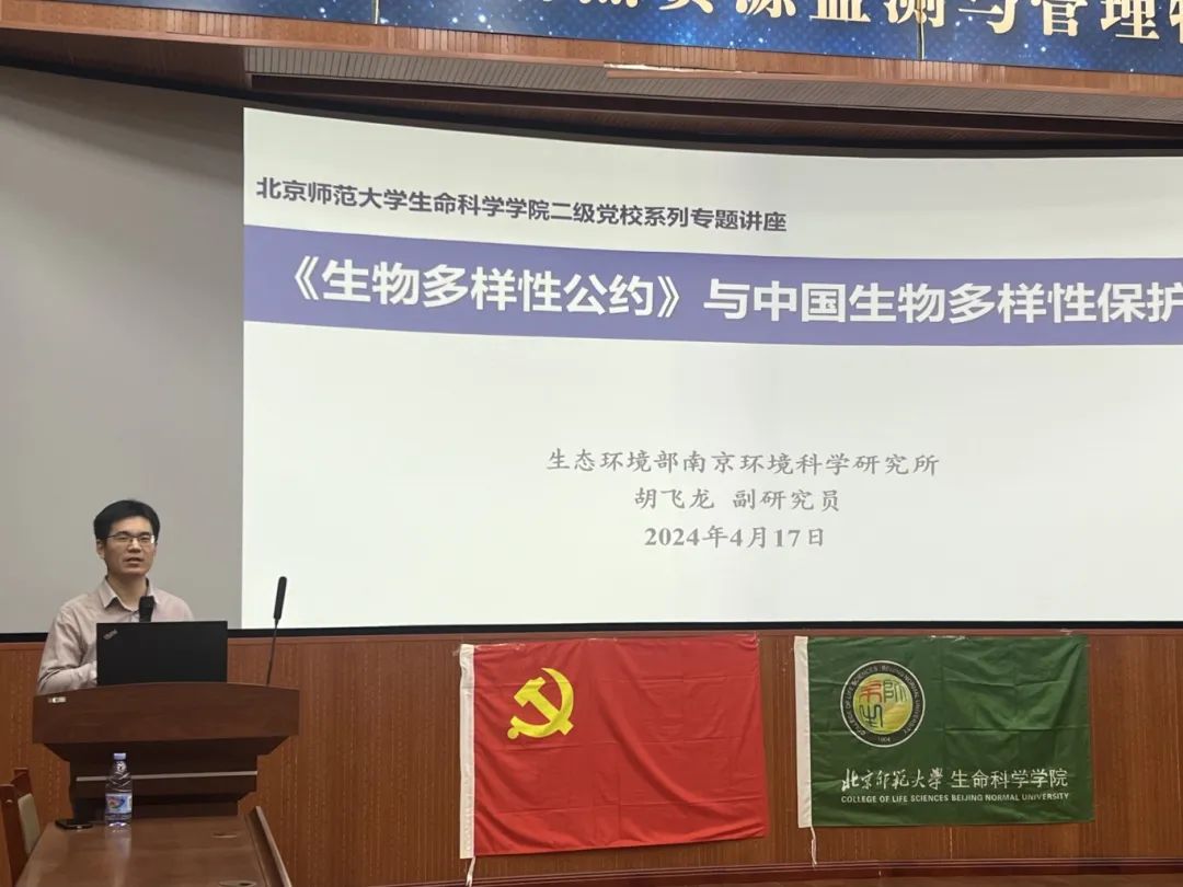 为深入学习贯彻习近平生态文明思想,普及生物多样性保护的相关知识,宣传倡导人与自然和谐相处的理念,万象城awc官网登录入口于4月17日上午举办专题为“《生物多样性公约》与中国生物多样性保护”的“生生不息”二级党校系列讲座,邀请生态环境部南京环境科学研究所胡飞龙副研究员普及《生物多样性公约》的重要性,并探讨中国在这一全球议题中的积极作用与进展,本次讲座由学院双肩挑辅导员刘畅老师主持,学院党委书记王天明老师出席。