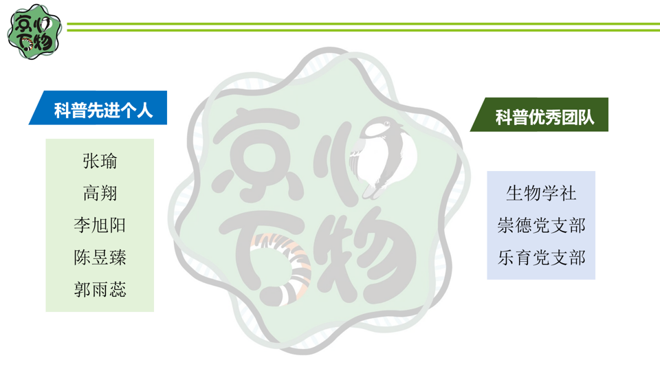 科普优秀团队:生物学社,崇德党支部,乐育党支部。