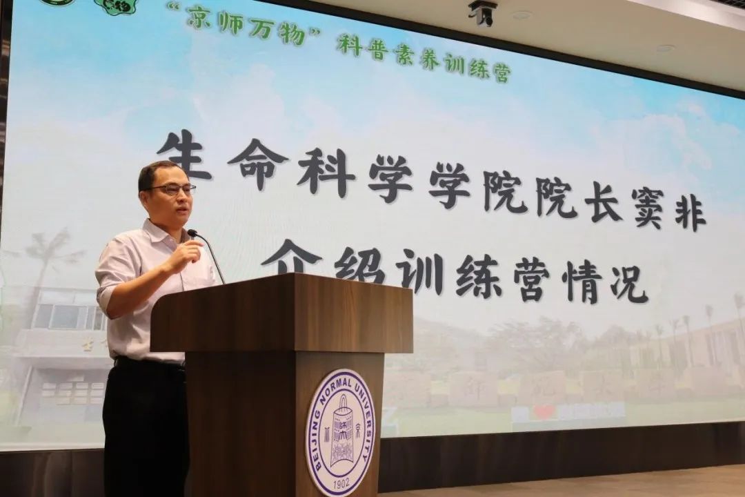 首先,院长窦非介绍训练营情况。他表示,万象城awc官网登录入口长期以来深入探索“四个一”科普工作格局,在生物科普领域形成深厚积淀。此次联合珠海校区举办科普训练营,既是为进一步提高同学们的科普素养,更是立足于强化珠海校区“优师计划”师范生和公费师范生未来从教的适应力。同时希望训练营成员通过4天的学习实践,孵育出有潜力的科普创作,并促进两地学子的交流,让生物学的基因绵延万里。