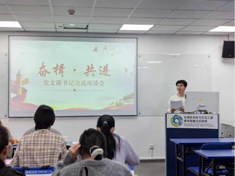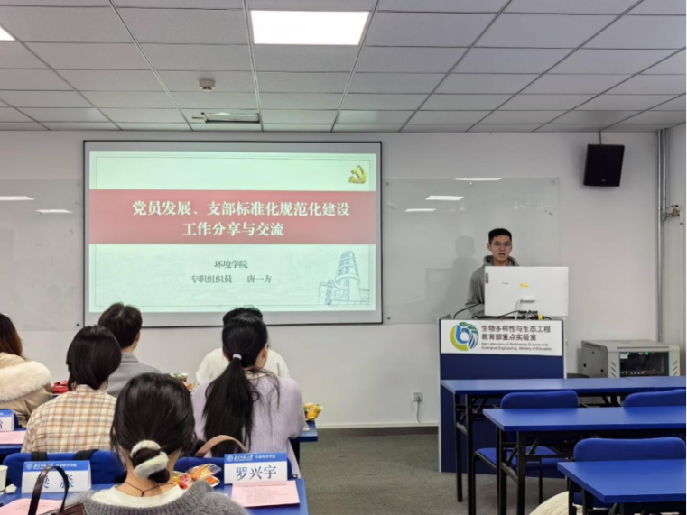首先,环境科学学院专职组织员唐一方老师与我们分享了流域综合管理教研所硕士党支部与环境规划与管理教研所硕士党支部的建设工作。对于党员发展与支部建设,他强调党员发展和支部标准化规范化建设的重要性,同时要在党员质量上狠下功夫,向我们分享了党员教育的“五关”发展原则。此外,唐一方老师也向我们展示了党日活动的特色化和多元化,突出专业特色,实现宣传创新,做有温度的学生引领。