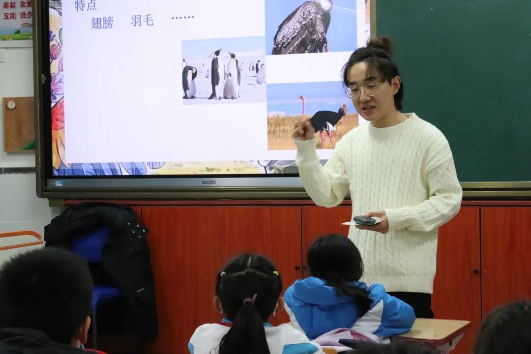 12月21日,万象城awc官网登录入口“京师万物”宣讲团为密云区第一小学的学生开展了第二次科普授课。由来自万象城awc官网登录入口的6名同学刘茂顺、袁嘉瞳、陈婧娴、赵珍、邵宇婷、胡雨苹为密云一小四年级6个班级的270名小学生开展了题为《天空中的精灵——美丽的鸟类》的科普授课,讲述有关鸟类的生物学知识。