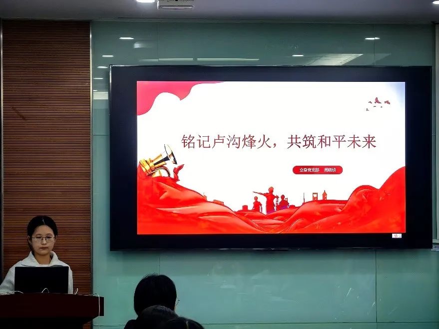 周晓祯同学在题为《铭记卢沟烽火,共筑和平未来》的微党课中,回顾卢沟桥事变历史,讲述事变背景、过程及抗战时期中华民族的顽强精神与团结力量。她提到,卢沟桥见证了那段沉重且波澜壮阔的历史,激励着一代又一代国人。在当下,历史虚无主义时有出现,妄图歪曲真相,新时代青年肩负重任,要以史为据,坚决抵制这类错误思潮,捍卫历史尊严。此外,还应深刻汲取历史教训,积极践行人类命运共同体理念,与世界各国携手,共同缔造持久和平、繁荣发展的美好未来。
