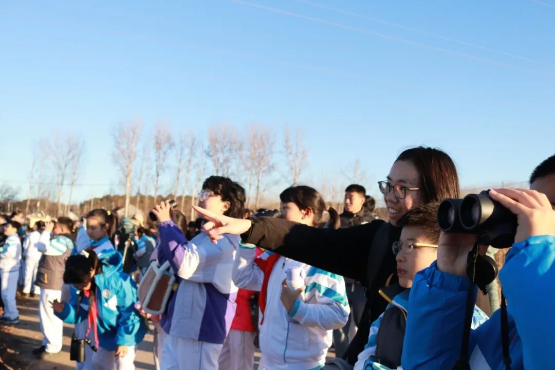 董路老师与宋会强老师不仅引导同学们通过不同类型的望远镜仔细观察鸟类的形态特征,如羽毛颜色、喙的形状、翅膀的长短等,还深入介绍了它们的行为习性、栖息环境以及在生态系统中的重要作用。同学们认真聆听,不时提出问题,现场学习氛围浓厚。
