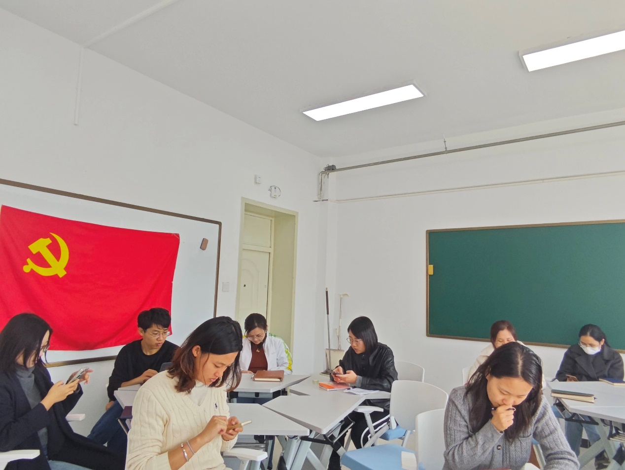 会议第三项,分享学习心得。支委成员带头分享学习心得,支部书记宋宏涛老师深入解读了《决定》的背景、意义及主要内容。宣传委员郝晓冉老师围绕《决定》中“构建更有效力的国际传播体系”,结合具体案例进行了分享。纪检委员李洁老师带领支部党员教师回顾了《决定》要点,并就“中国式现代化,民生为大”主题进行了案例学习分享。随后,各党员教师就“教育科技人才”“深化改革和创新发展”“数字技术有效融入教学”“实习实践制度”“系统观念”“勇于担当作为”“社会主义文化强国建设”等议题展开交流讨论,在讨论中,大家发现思政和实验教学两支队伍存在很多协作空间,可以共同推进创新人才培养,为学院的发展贡献力量。