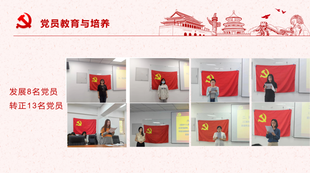 随后,刘洪豆同志在会议中回顾了支部三年来的发展历程和工作成果。她详细列举了支部在各个方面取得的进步和成就,包括党员教育与培养、“红色1+1“支部共建、专题讲座、科普微课等方面,并对每一位党员的辛勤付出表示了衷心的感谢和高度的肯定。
