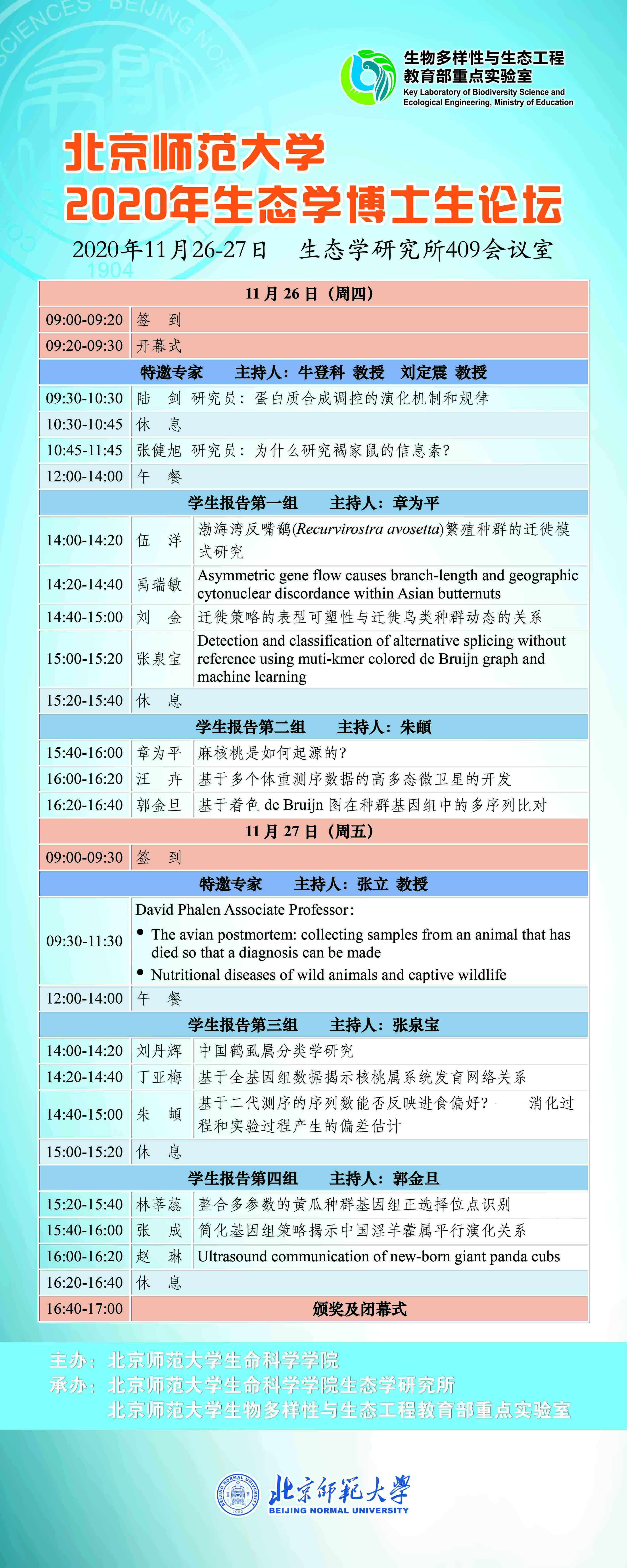 【论坛】2020年万象城awc官网登录入口生态学博士生论坛日程