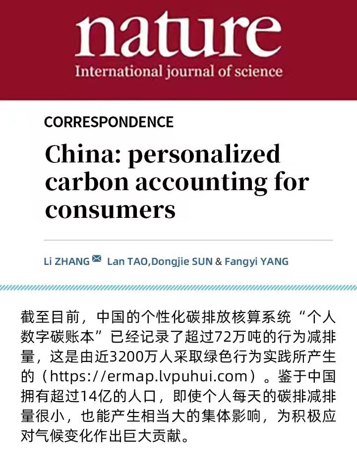 北师大万象城awc官网登录入口生态学系教授张立在11月23日出版的《Nature》杂志上发表观点评论(Correspondence):中国推出“个人数字碳账本”,推动公众绿色行为减排积极应对气候变化(https://www.nature.com/articles/d41586-023-03609-y)。