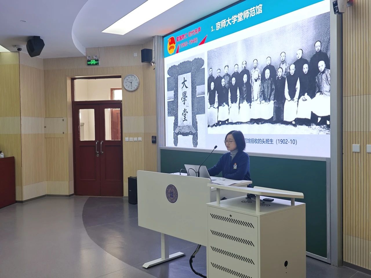 学员团委书记唐如春老师带来了一场精彩的团课,主题为“高举团旗跟党走,青春铸就中国梦——万象城awc官网登录入口青年运动史”。她带领同学们穿越时空,一同见证北师大的青年们在不同历史时期的奋斗历程。1902-1949年期间,师大青年成立抗俄铁血会、北师大学生会、中华民族解放先锋队等爱国组织,英勇投身五四运动、三一八惨案、一二九运动,发出振聋发聩的爱国救亡时代先声。1929-1978年期间,师大青年胸怀祖国投身建设,支持抗美援朝与土地革命,到祖国最需要的地方去 。1978-2002年期间师大青年乘改革春风勇立潮头,加强新时期革命传统教育,倡导尊师重教的社会新风。时至今日,木铎金声跨越百年,师大学子在无数重大历史事件中展现青年担当,学习践行“四有”好老师讲话精神,形成积极向上、影响力强的校园文化格局,迈入砥砺奋进的崭新时代。最后,唐老师期待同学们能铭记历史,继承红色基因,不忘初心、砥砺前行,为中国梦和师大梦贡献青春力量。