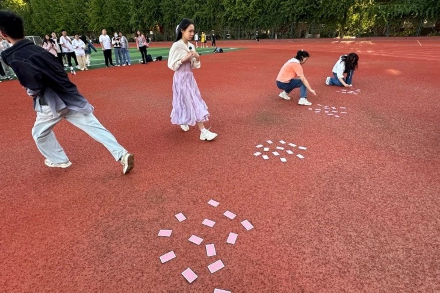 完成队伍建设后,主持人设计了两项活动,分别是翻牌游戏和“猴子捞月”,四支队伍一起进行比拼。在翻牌游戏环节,如来佛祖队配合失误,两轮游戏均排在最后,而六朵金花队和雨过天晴队很快掌握了游戏的精髓,迅速达成了目标。在“猴子捞月”过程中,同学们最初都一筹莫展,但最后通过大家集思广益和精妙的团队配合,所有队伍均顺利完成了游戏。