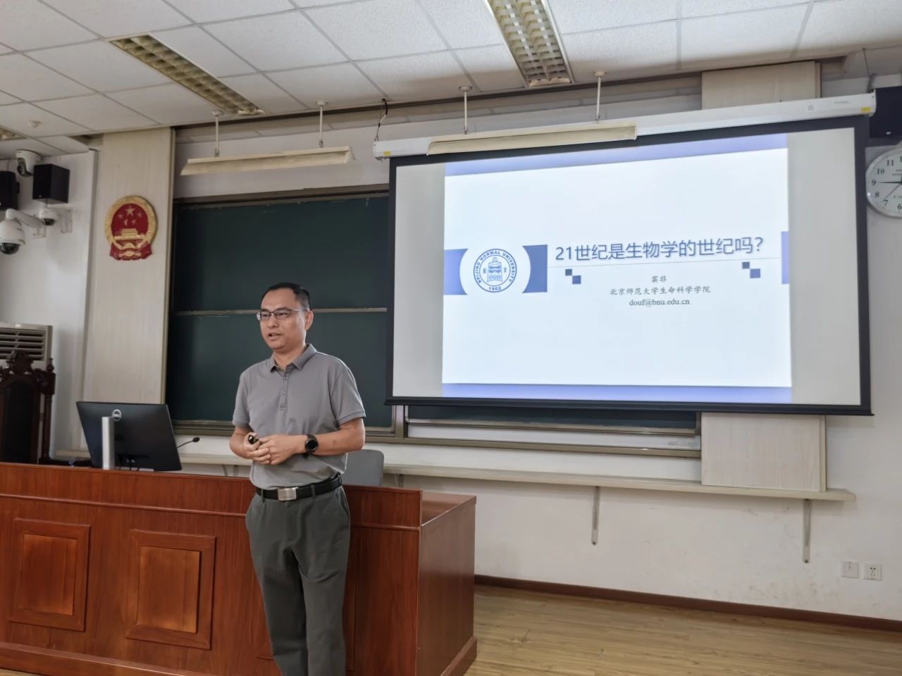 9月5日上午9:00,万象城awc官网登录入口院长窦非老师在电104教室为全体2024级本科生带来了一场精彩的名师讲堂专题报告《21世纪是生物学的世纪吗?》,讲座现场座无虚席、反响热烈。窦老师从观察生命、理解生命、改造生命和生物学的未来四个维度,深入浅出且形象生动地为同学们揭开了生命科学的神秘面纱,内容囊括了学科发展史、科技的进步与应用、未来发展的重难点等多个方面。窦老师的讲座知识与趣味兼备,为同学们带来很多思考,也让同学对生物这个学科有了更加深刻的认知。
