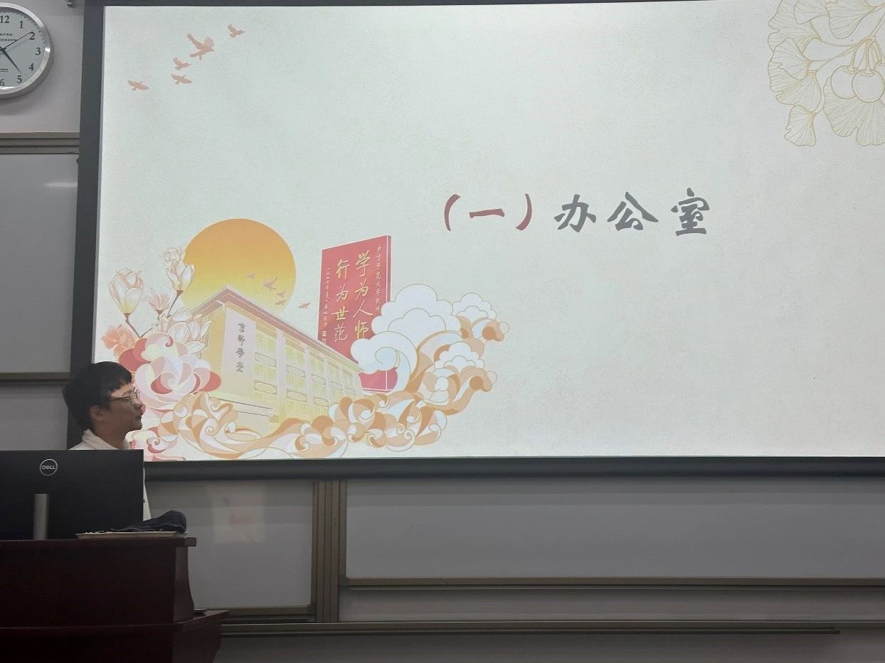 办公室主任赵彦植首先总结了本学期的报销工作、对权益工作的推广、对举办过的活动的复盘以及学生会网盘的完善工作和评优事宜,并介绍了办公室下学期的工作计划。办公室的工作种类较多,但是全体办公室成员积极配合、努力熟悉工作流程,顺利地完成了每一项工作。