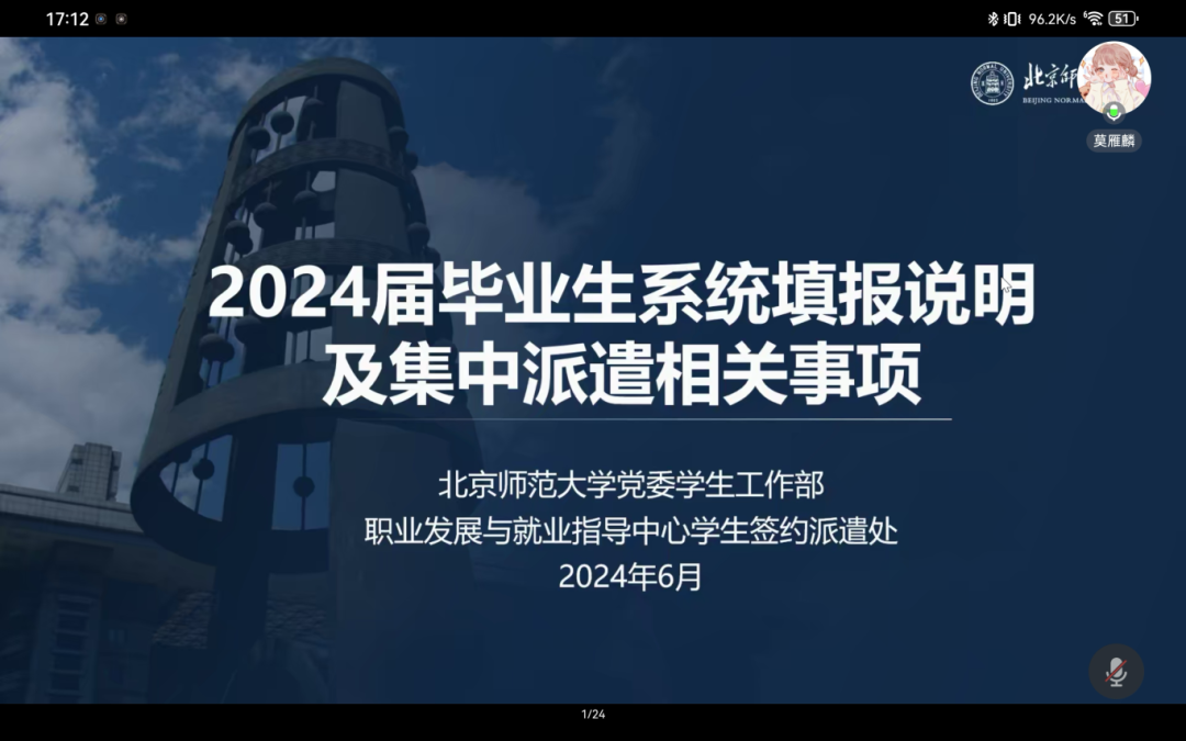 2024年6月5日下午17:00,万象城awc官网登录入口线上举办2024届毕业生就业派遣手续说明会,党委学生工作部职业发展与就业指导中心莫雁麟老师和万象城awc官网登录入口党委副书记殷实老师参会,会议由学院就业辅导员谷世鹏老师主持,万象城awc官网登录入口200余名应届毕业生积极参与,讲座圆满顺利举办。