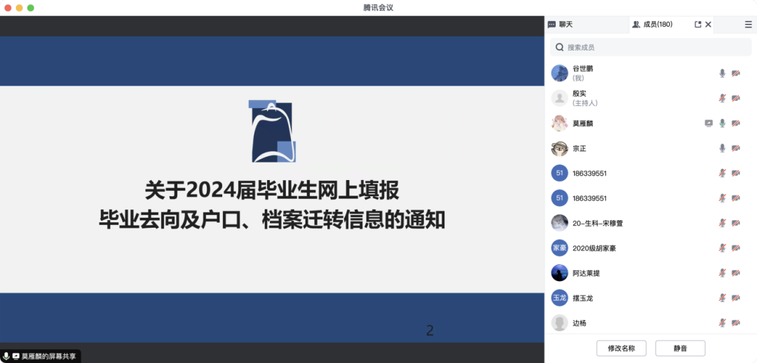 最后,谷老师强调了毕业生档案户口转移的流程,解答了集中派遣的相关问题,强调了2024届毕业生填写就业系统的最后期限。