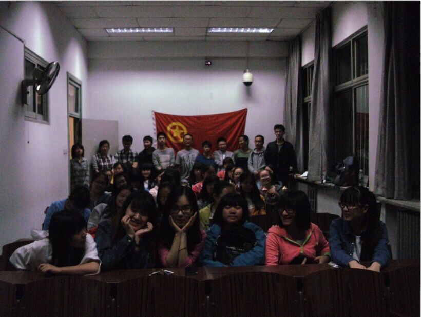 最后同学们一起到教室后面合影留念。在五四青年节到来之际,组织同学们学习十八大精神,很好的增强了同学们的使命感和责任感。把十八届四中全会“依法治国”的主题很好的介绍给了同学们,让同学认识到了法制的重要性。同时热烈的讨论,激烈的抢答很好的活跃了活动的气氛,让同学间更好的交流,增进了同学间的感情。