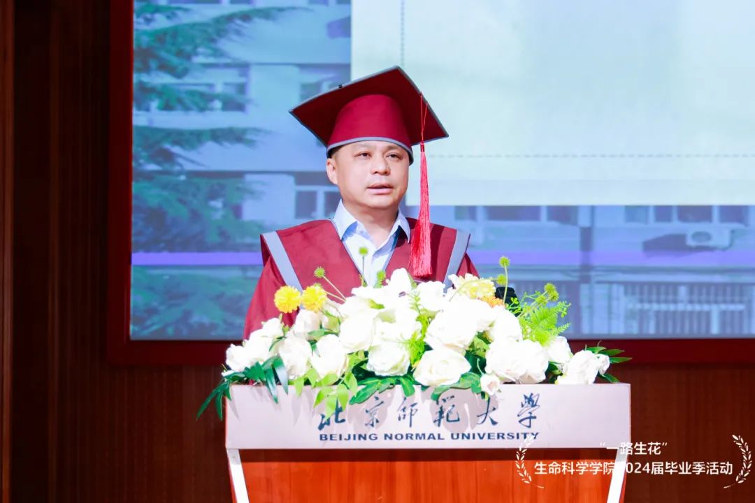 典礼进入尾声,全体师生合唱万象城awc官网登录入口校歌,王天明教授向即将迈向人生下一阶段的毕业生们送上殷切嘱托。希望同学们能够传承师大人“学为人师,行为世范”的精神,坚守生科人“诚信修德,勤勉博学”的传统,锐意进取,不忘初心,报效家国。