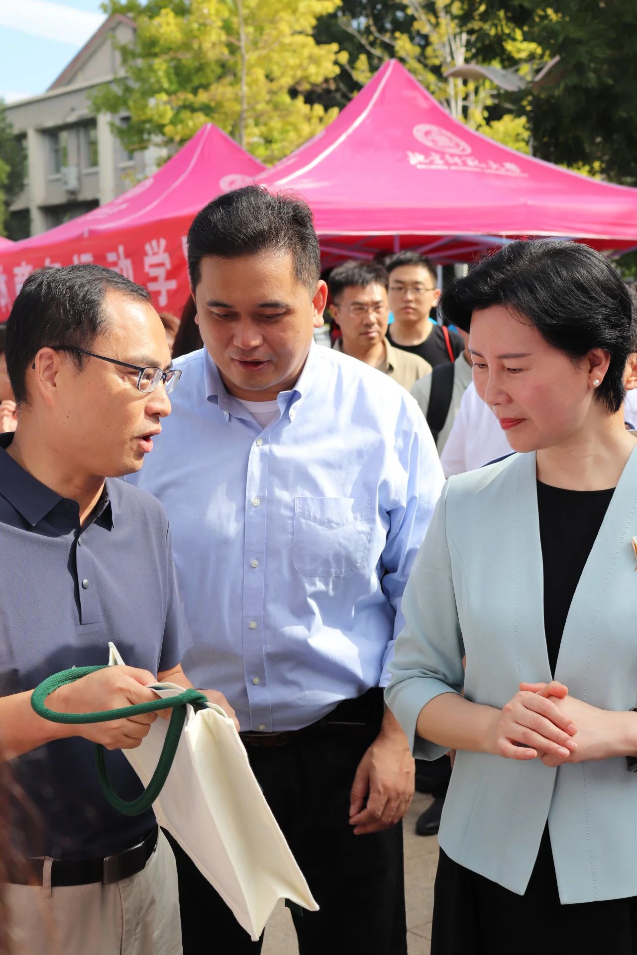 校党委书记程建平和校长于吉红来到学院迎新点前亲切慰问报到新生和志愿者们。两位领导不仅向大家传递了深切的关怀,更以满含期许的殷殷话语,寄语新生们怀揣梦想,勇于探索。