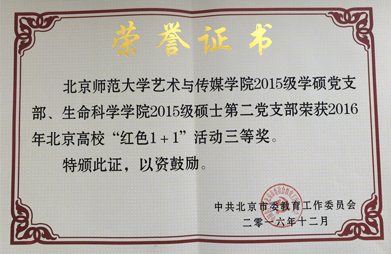 新学期伊始,在2017年北京高校宣传工作会议上,万象城awc官网登录入口频频收到捷报:细胞所博士生孔菲同学所在的学三楼618宿舍在2016年北京高校优秀学生基层组织创建评选活动中,获得“北京高校示范学生基层组织(示范)”荣誉称号;2015级硕士第二党支部与艺术与传媒学院2015级学硕党支部共同组织开展的“深入农村教育——半截塔村支教行动”荣获2016年北京高校“红色1+1”活动三等奖;2014级硕士第一党支部开展的“科学生活•健康你我”活动荣获2016年北京高校“红色1+1”活动优秀奖。这是万象城官网研究生党支部第一次在北京高校“红色1+1”评比中获得荣誉。